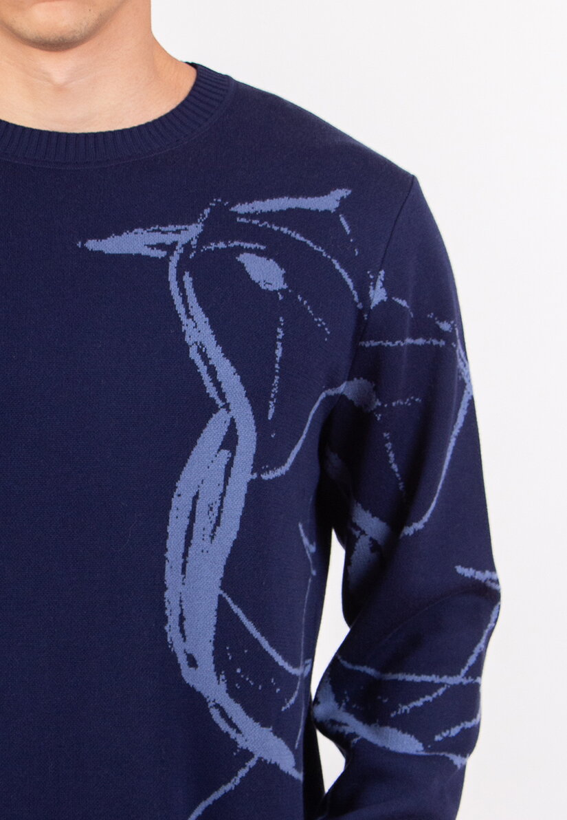The Men’s Skybird Sweater is knitted from 100% cotton and features a stylized Skybird motif that is clearly expressed in the design. A round neckline and long sleeves create a classic base, while the motif adds a distinctive visual character.