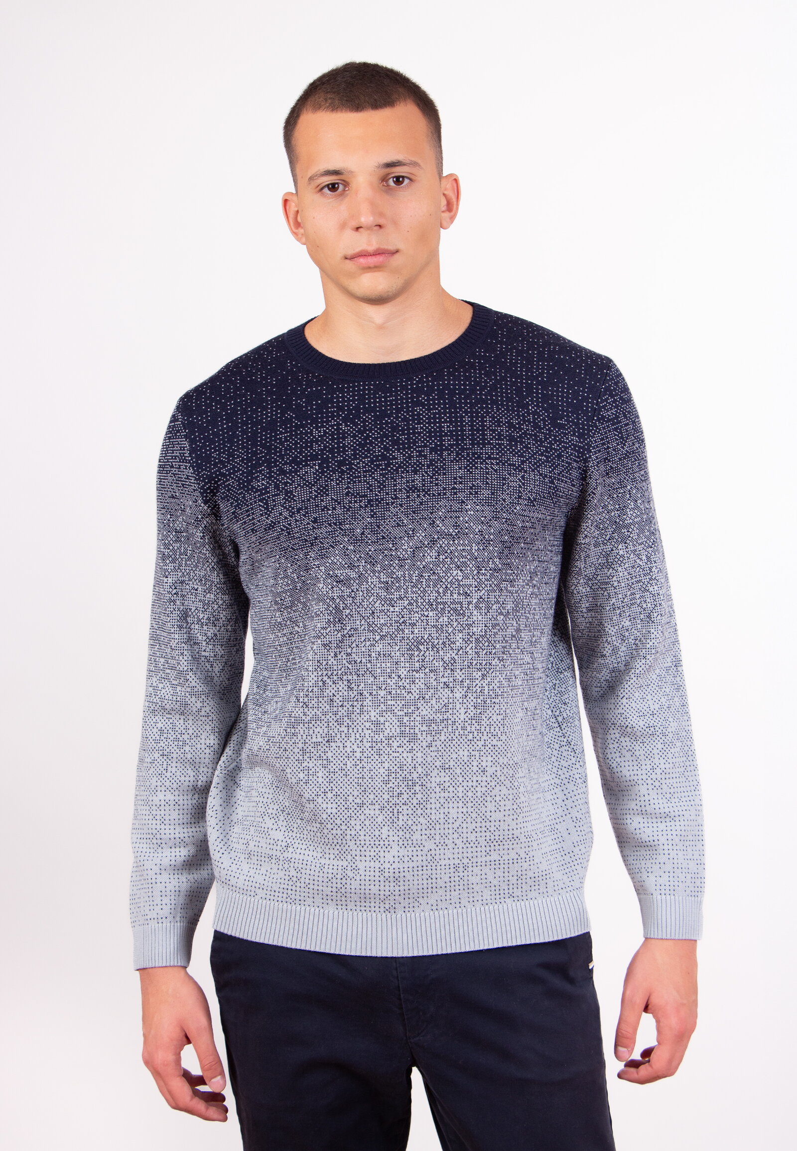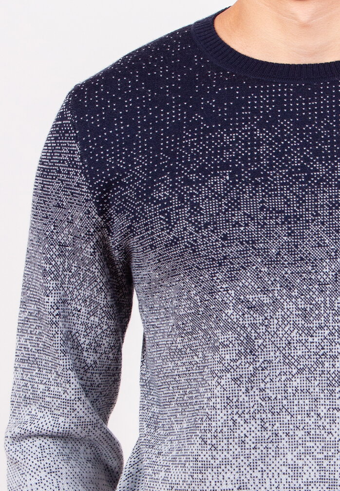 The men’s jacquard sweater with a Murmuration motif is knitted from 100% wool, with a focus on the structure of the jacquard knit and the clearly defined motif. A round neckline and long sleeves create a clean base, while the motif arrangement adds v