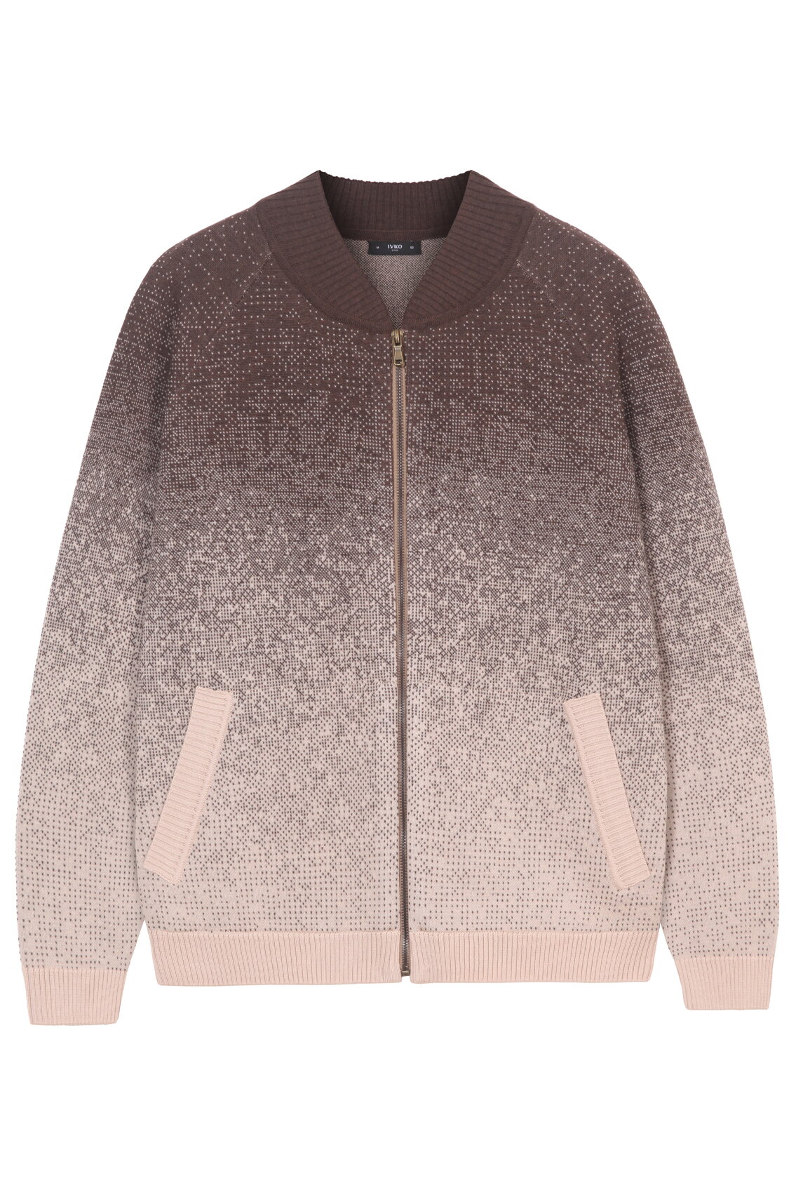 The men’s zip jacket with Murmuration motif is knitted from a wool blend. The dynamic arrangement of the motif creates a strong visual rhythm, while the full-length zip fastening and long sleeves maintain a functional, wearable form.