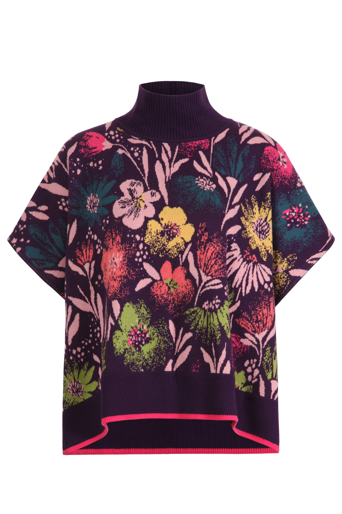 Poncho mit Rollkragen aus 100% Baumwolle, in lockerer Passform, mit gerippten Abschlüssen und Blumenmuster.