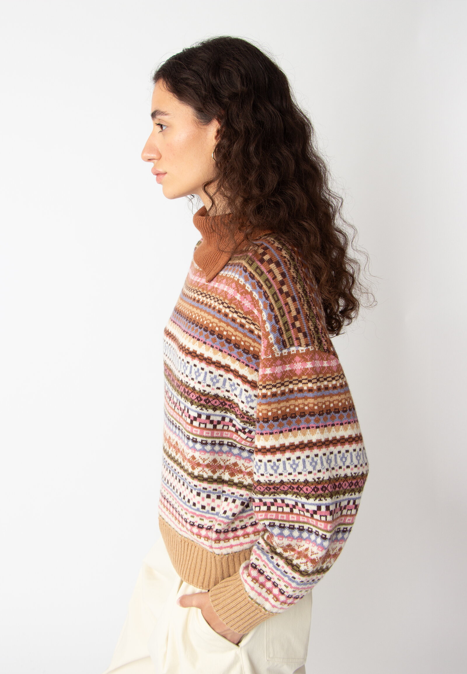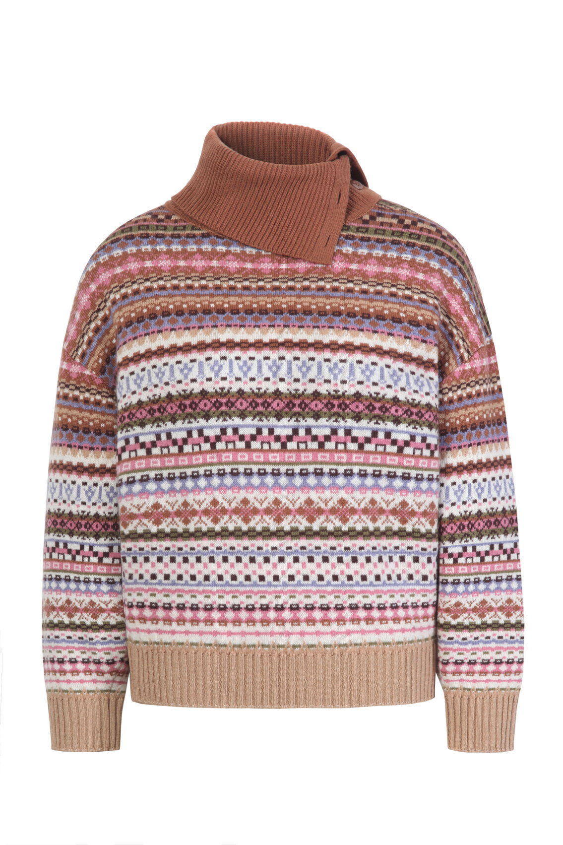 Dieser locker sitzende Pullover ist aus einer Wollmischung gestrickt und verfügt über einen übergroßen Rollkragen mit Knopfleiste, gerippte Abschlüsse und ein Streifenmuster.