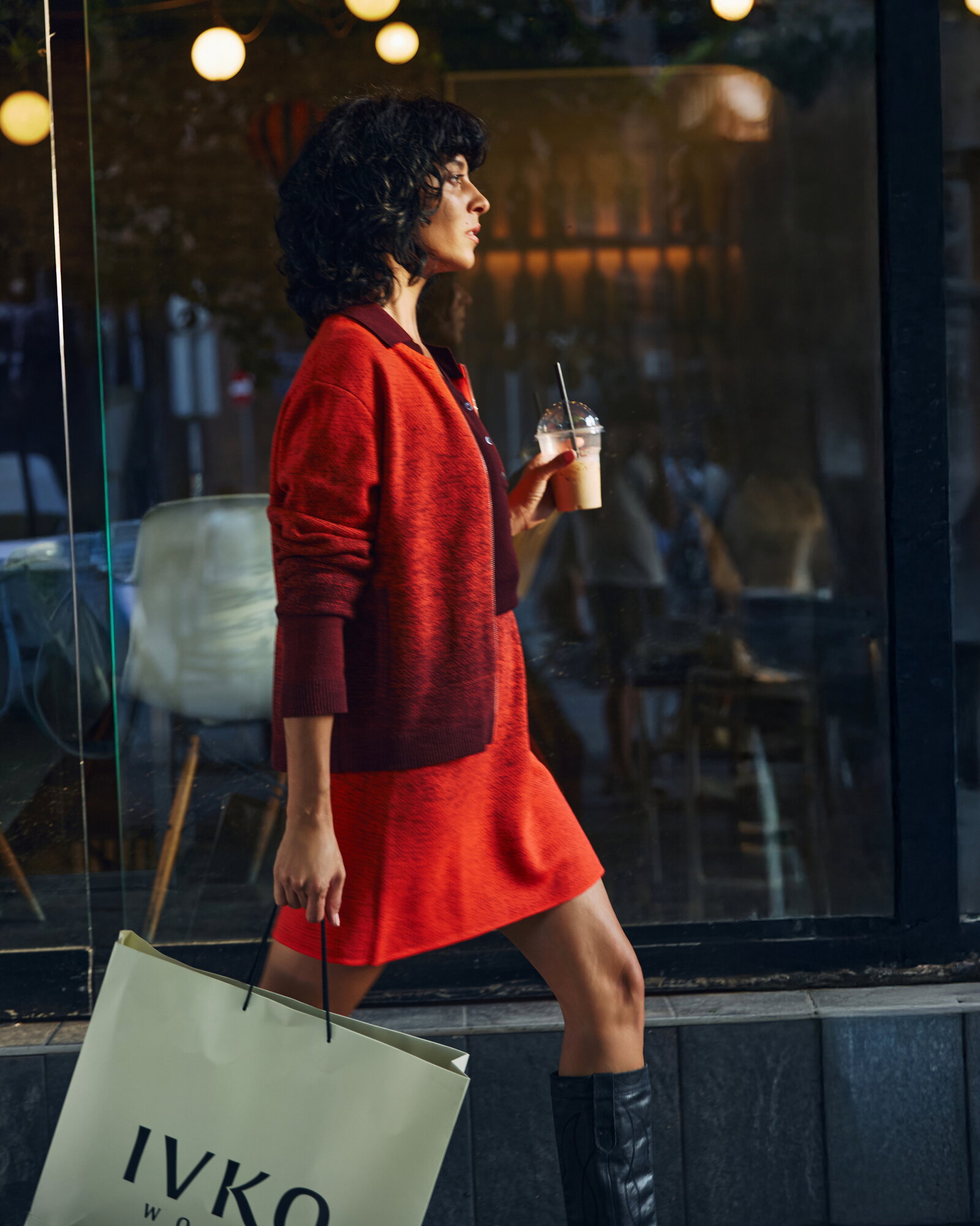 Zip-Jacke aus Wollmischung mit Murmurations-Motiv. Das dynamische Design und die moderne Form bieten Bewegungsfreiheit und Wärme – perfekt für den Alltag.