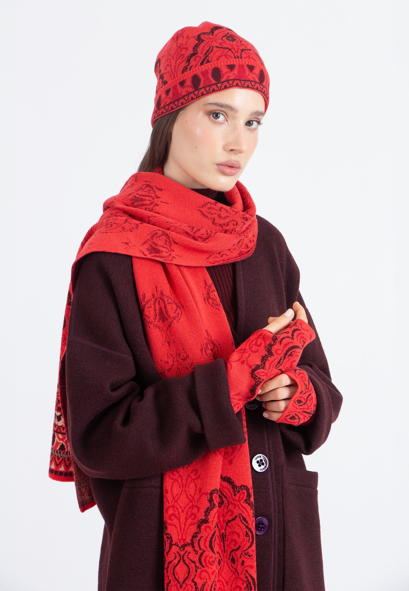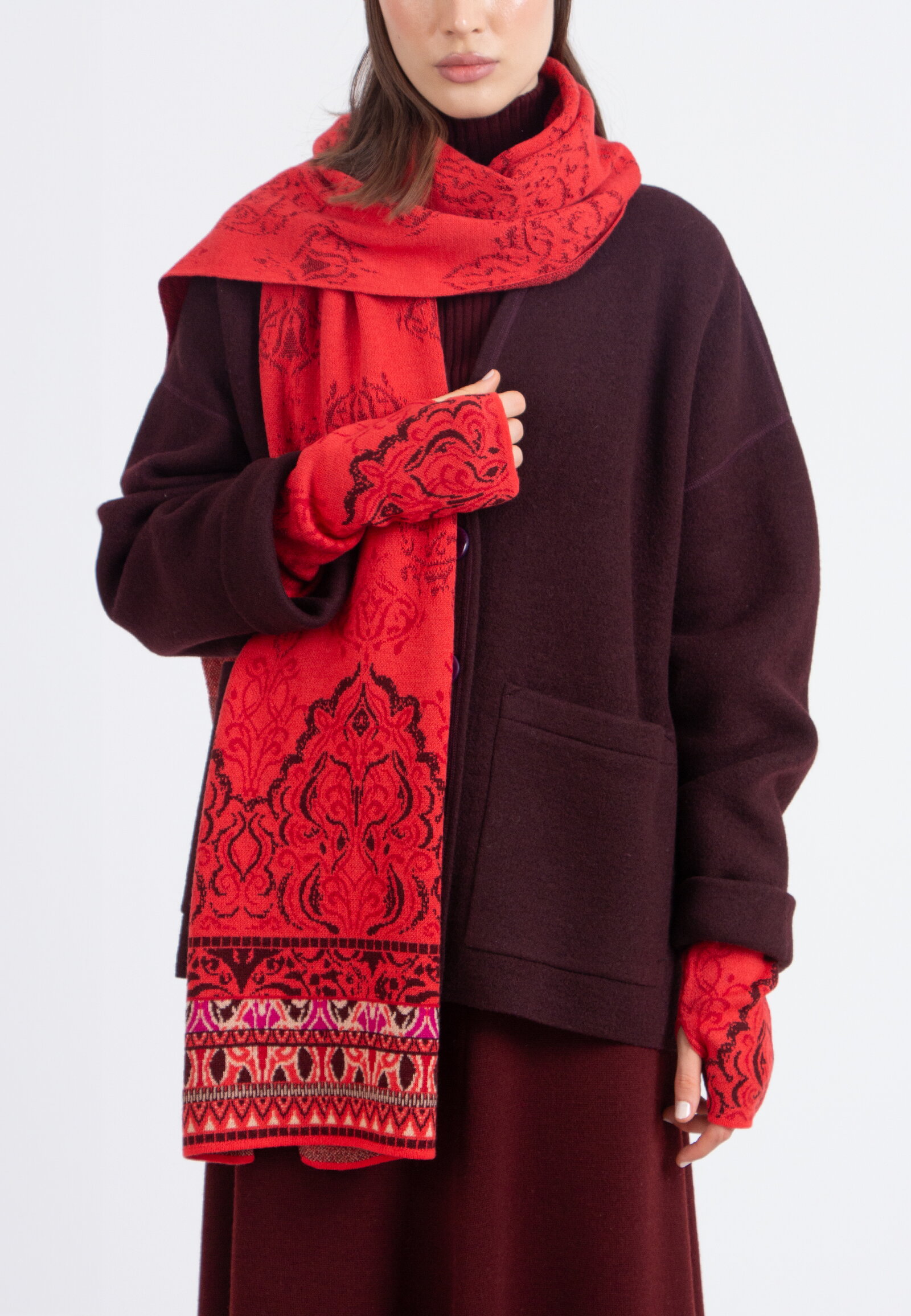 Stulpen aus Wolle mit Ornament-Motiv. Weich, flexibel und stilvoll – passen sich mühelos jedem Look an.