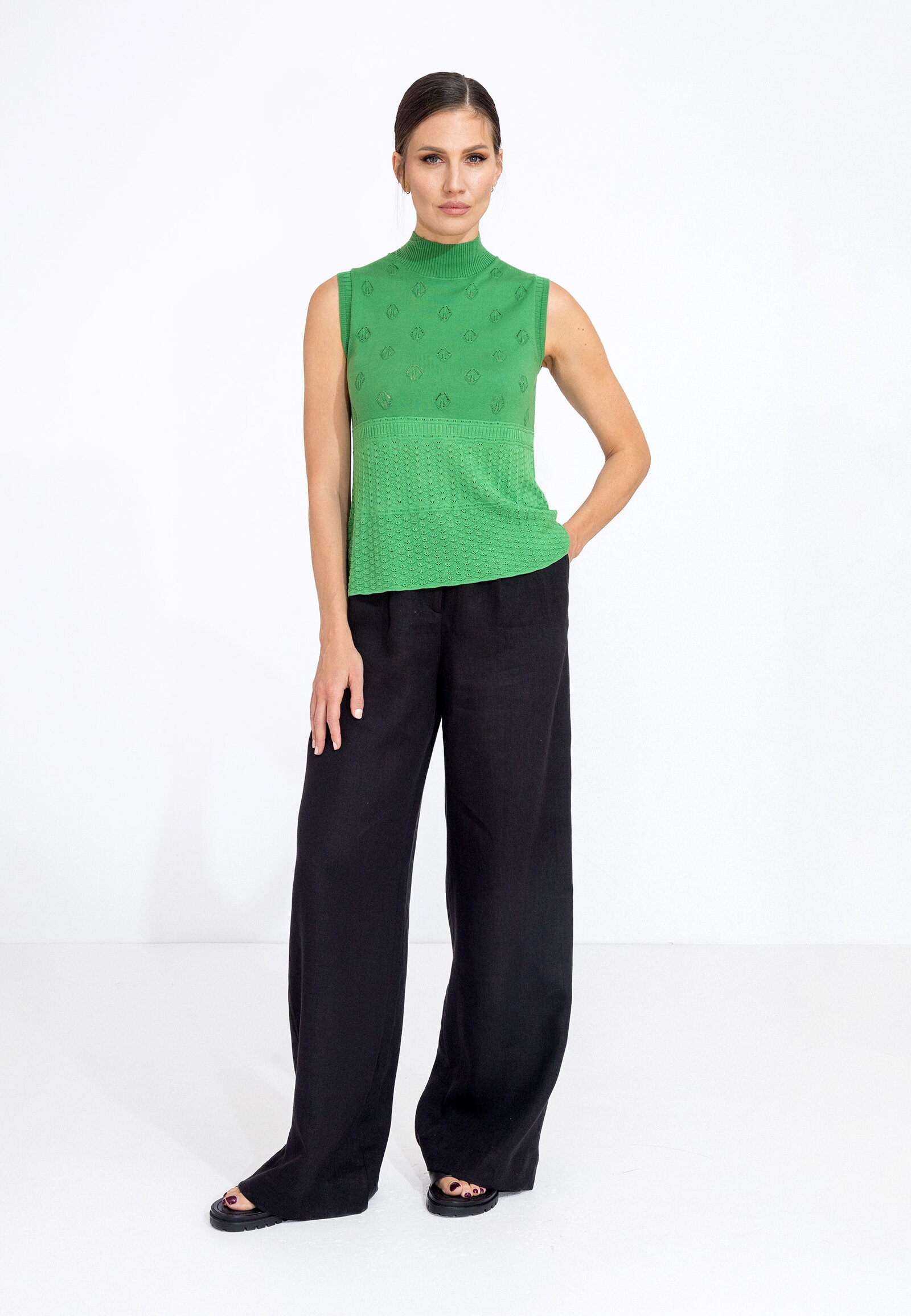 Lightweight pullover made of viscose and cotton blend, designed for a timeless style. It features a ribbed roll neck and structure pattern.
