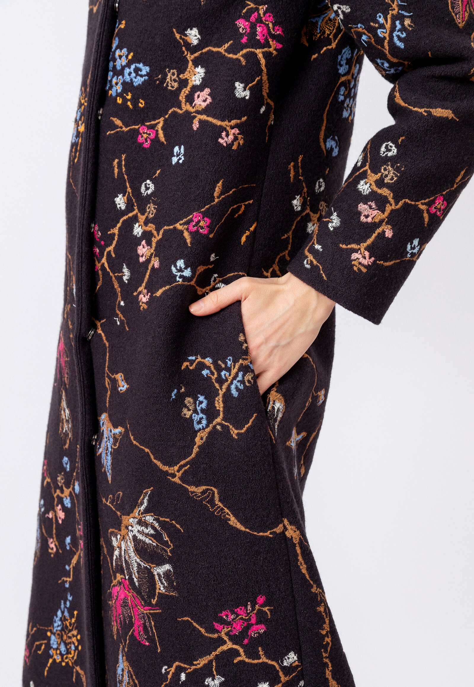 Stay toasty warm no matter how cold it is outside in this stylish coat. Featuring a slim, elegant cut with a Japan-inspired floral embroidery and hidden buttoning, this piece is perfect for adding a sophisticated touch to your ensemble.