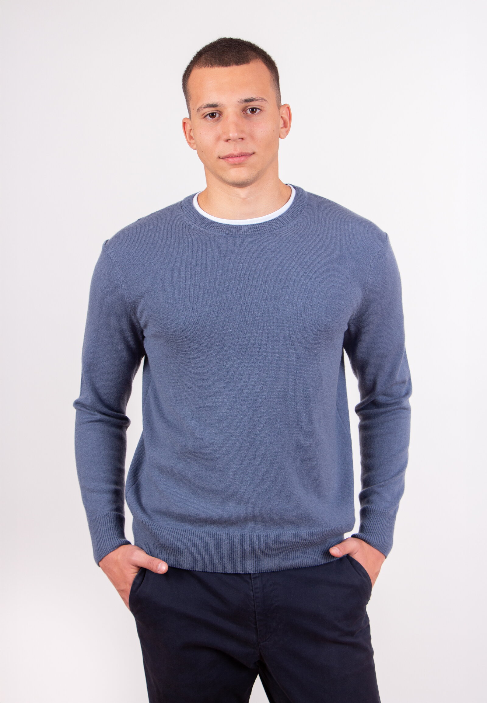 Muški džemper sa O-izrezom ispleten je od mešavine kašmira, sa fokusom na kvalitet materijala i sastav pletiva. Dugi rukavi i jasna linija kroja čine ovaj artikal svedenim i lako uklopivim u različite stilove oblačenja.