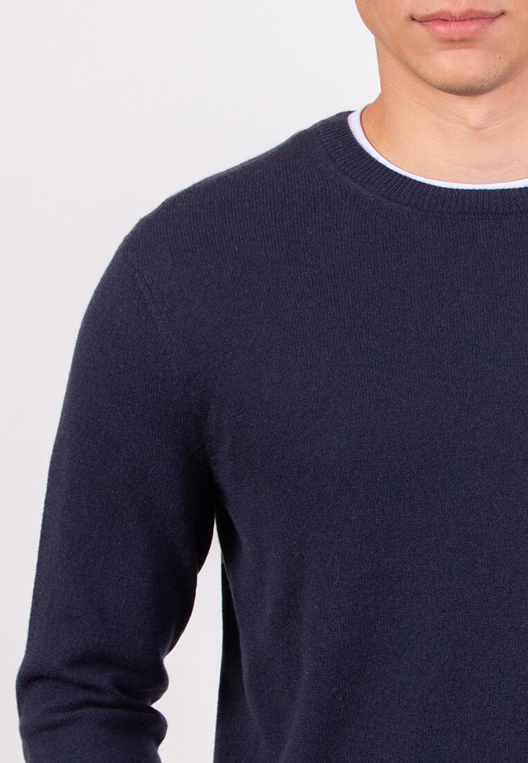 Muški džemper sa O-izrezom ispleten je od mešavine kašmira, sa fokusom na kvalitet materijala i sastav pletiva. Dugi rukavi i jasna linija kroja čine ovaj artikal svedenim i lako uklopivim u različite stilove oblačenja.