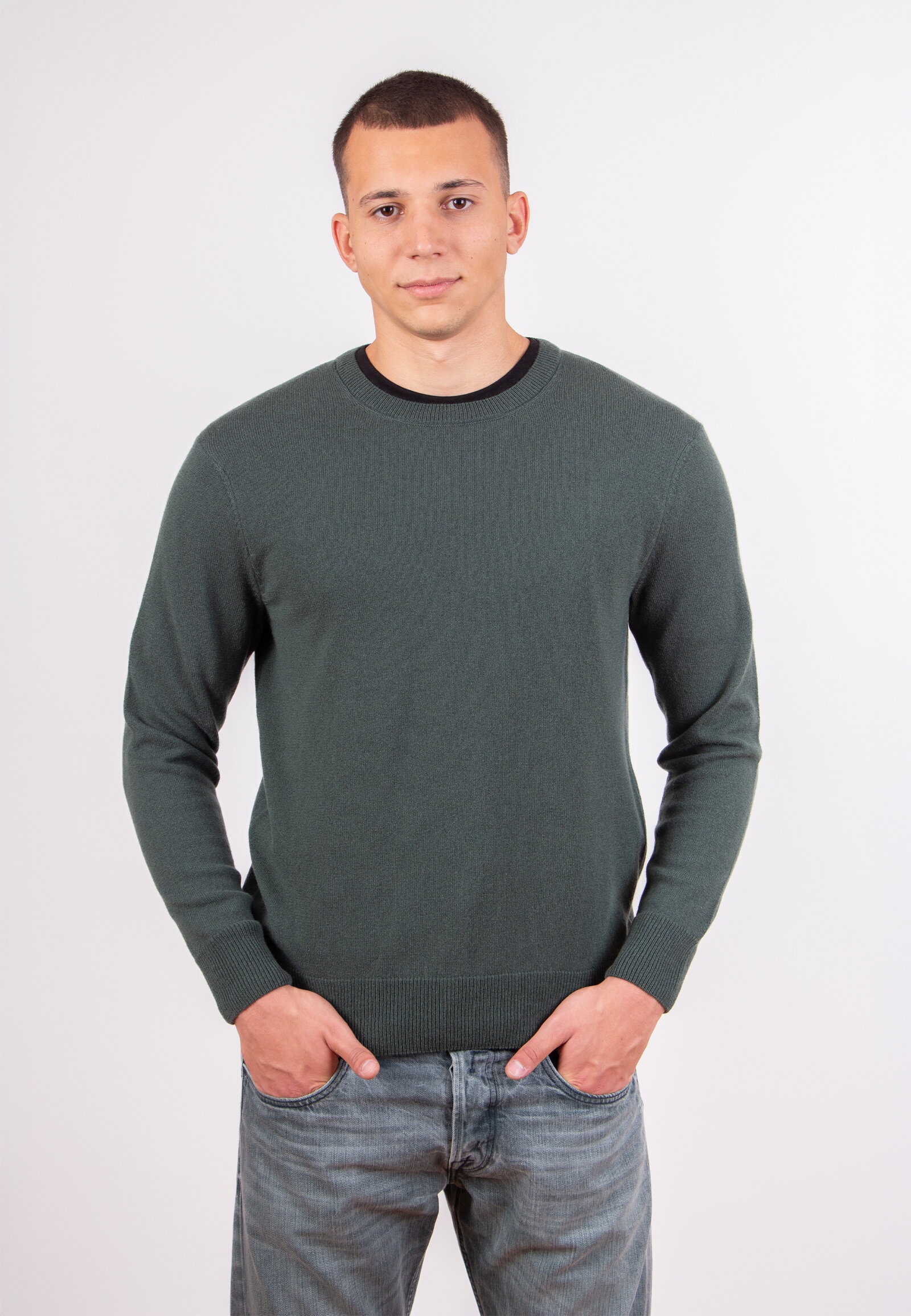 Muški džemper sa O-izrezom ispleten je od mešavine kašmira, sa fokusom na kvalitet materijala i sastav pletiva. Dugi rukavi i jasna linija kroja čine ovaj artikal svedenim i lako uklopivim u različite stilove oblačenja.