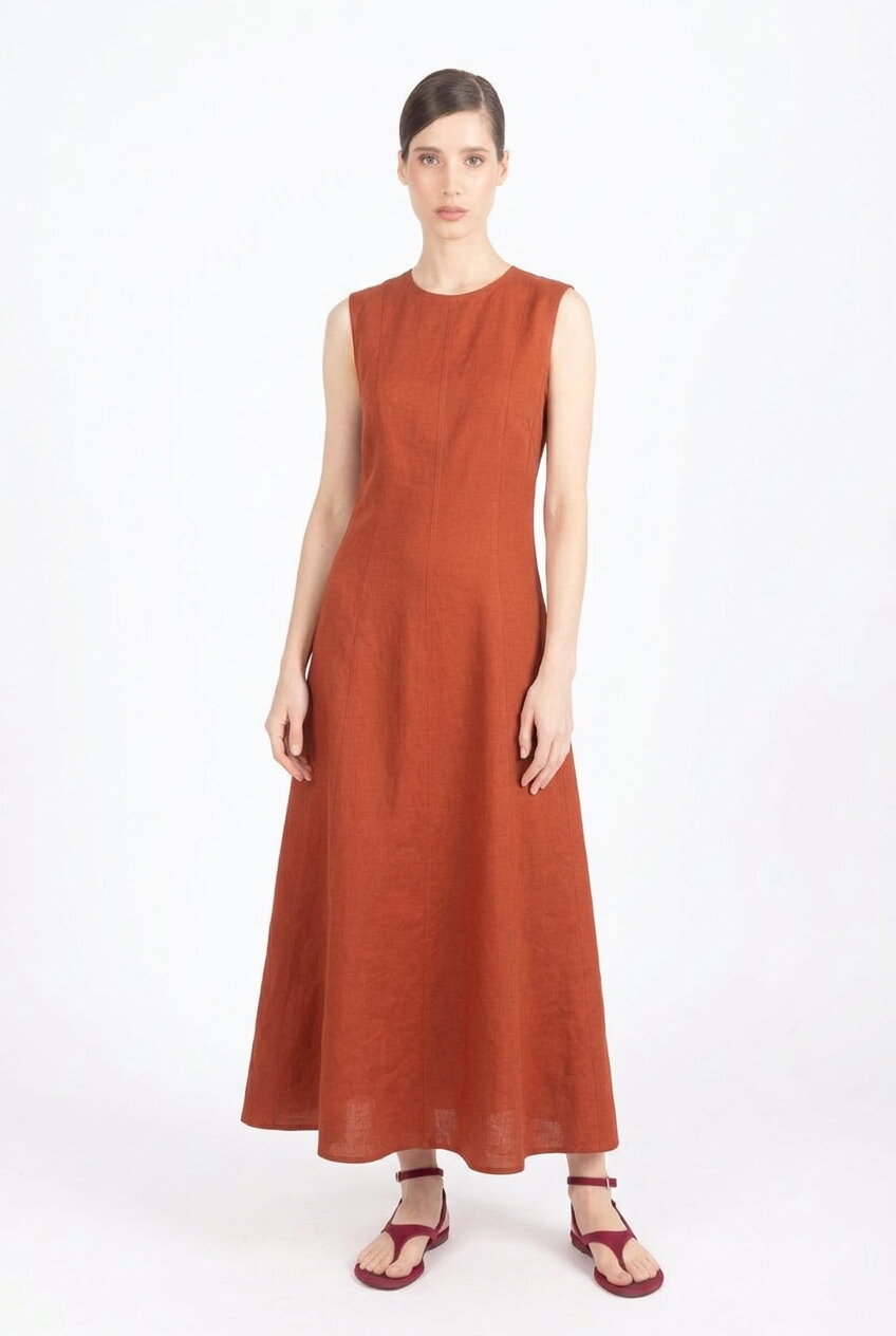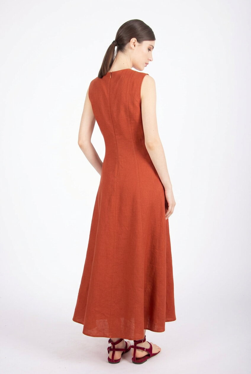 Lanena IVKO Woman haljina bez rukava ispletena od lana ističe prirodnu teksturu i svedenu formu. Ima A-kroj i čistu siluetu koja se lako uklapa u različite kombinacije.