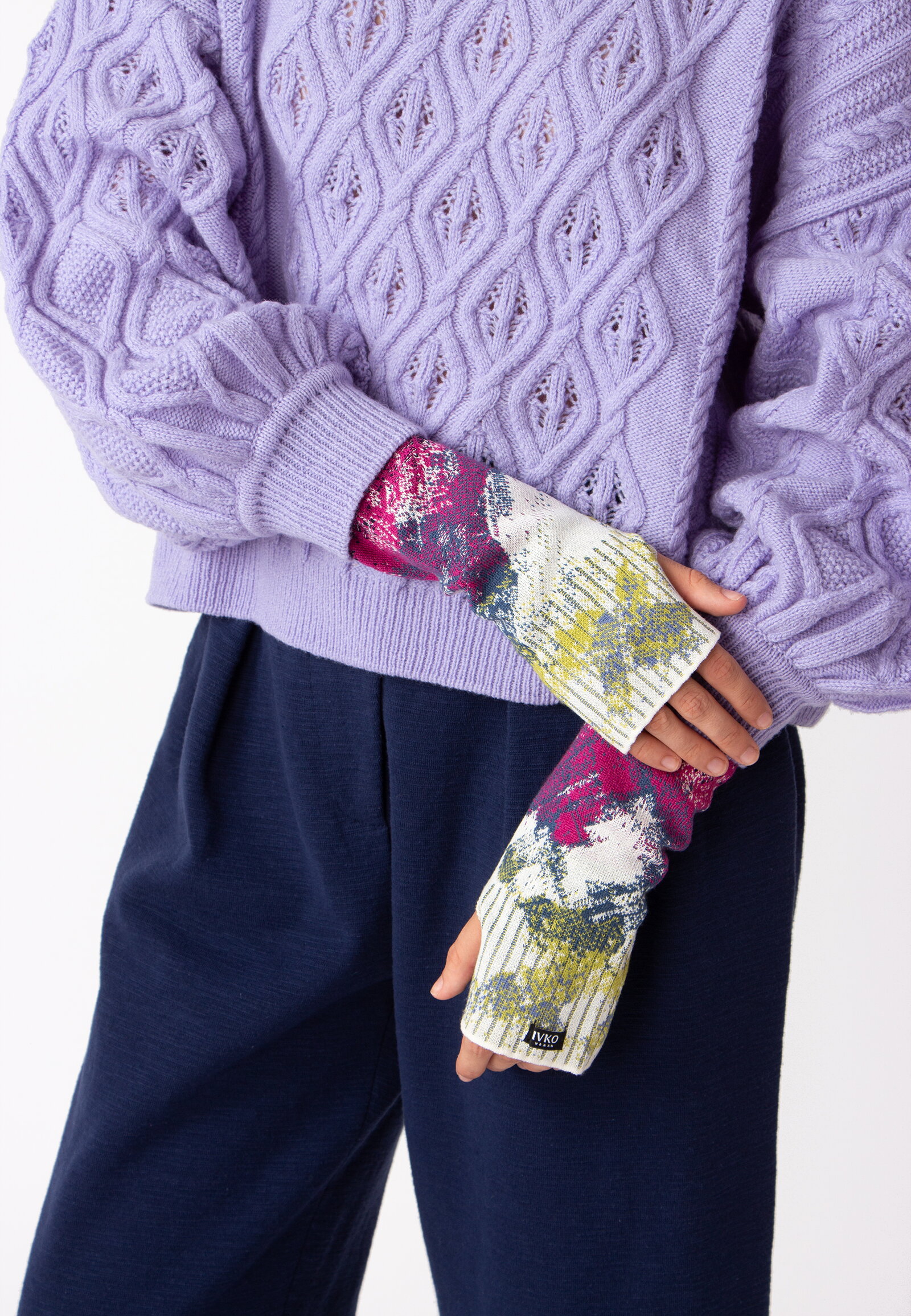 Narukavke, kamuflaža motiv, ispletene od mešavine vune i viskoze sa rebrastim rubovima.