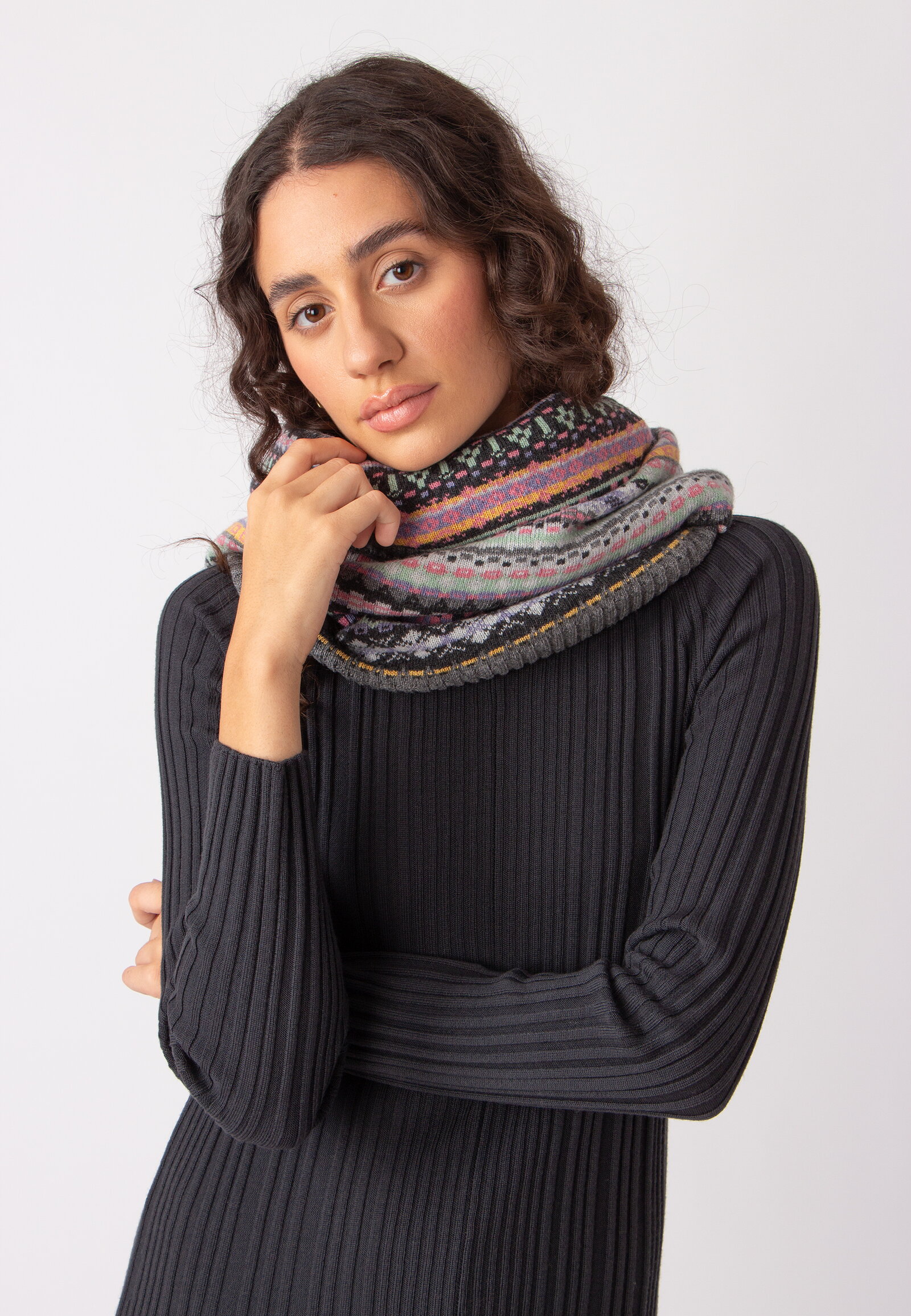 Šal ispleten od mešavine vune sa prugastim dezenom i rebrastim porubima.